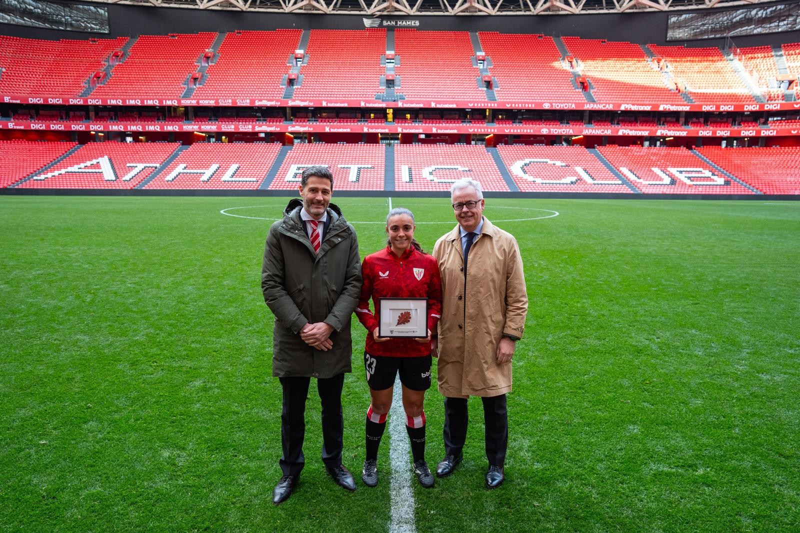 Eider Arana, antigua alumna y jugadora de Lauro, homenajeada en San Mamés