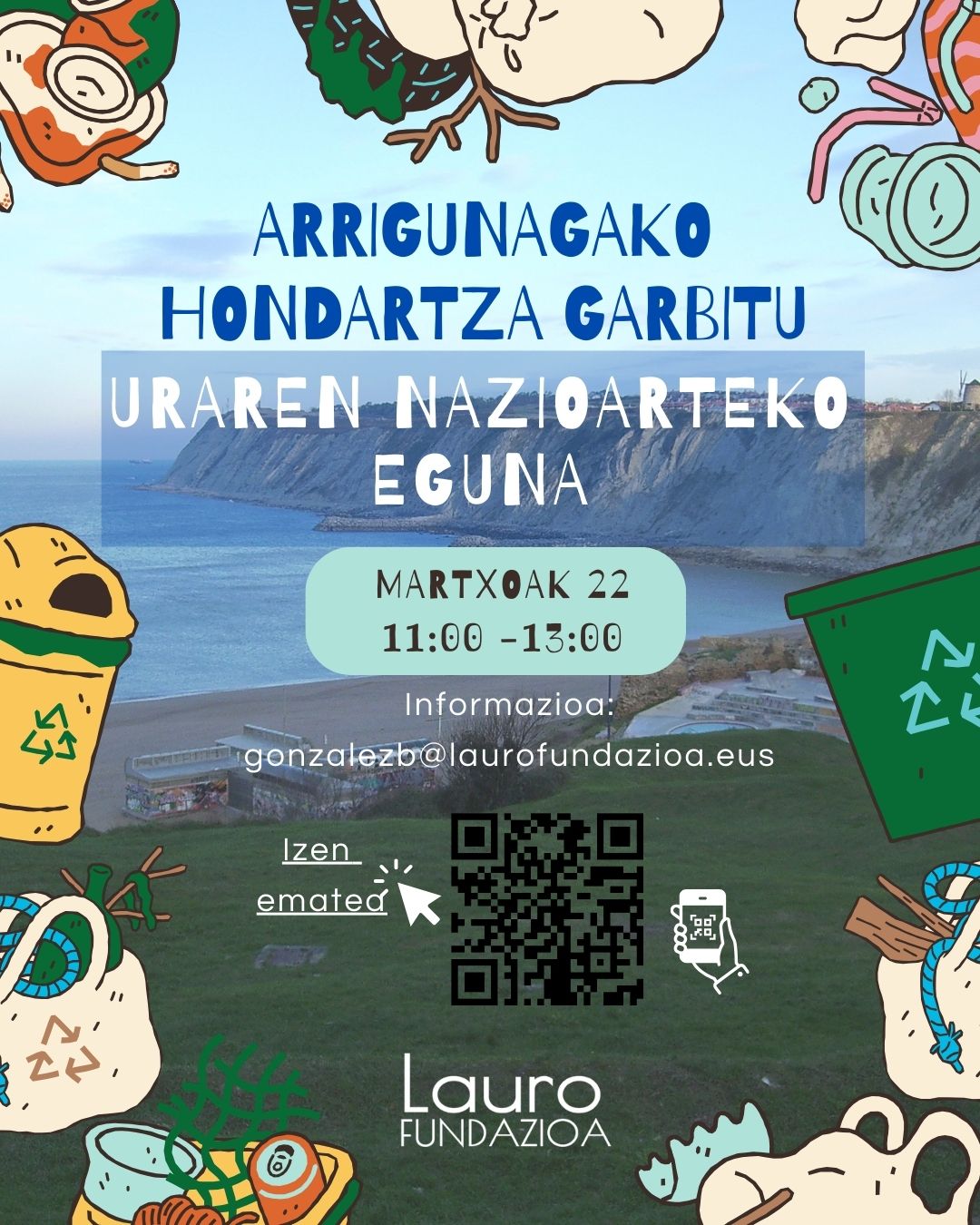 Lauro Fundaziotik Arrigunaga hondartzan hondakinak biltzeko jardunaldi bat antolatu dugu martxoaren 22an, Uraren Nazioarteko Eguna dela eta.